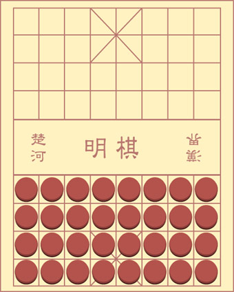 最初に盤外、または盤面の片側で、象棋の駒をすべて裏返し、よくかきまぜます。