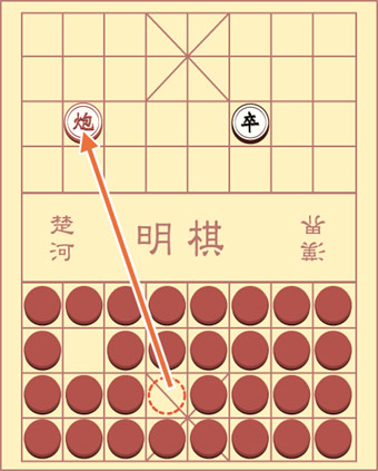 火包・砲も暗棋と同じで、移動は上下左右1マスで、相手の駒を取る時は、1つの駒を飛び越してのみ、相手の駒を取れます。 2つ以上の駒は飛び越せませんが、間に1駒あれば、上下左右何マスでも飛び越して、駒を取ることができます。 飛び越す駒は、敵・味方、関係なく飛び越せます。