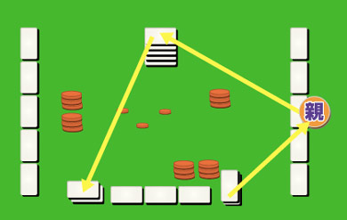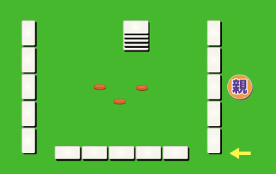 ■手牌交換 手牌交換は、親がプレイヤー全員の不要牌を一旦まとめて集め、それらを山札と合わせ、よくシャッフルしてから各自に配ります。 |