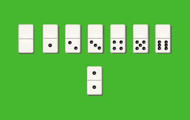 親を決め、ドミノ牌を5枚ずつプレイヤーに配ります。余った牌は見えないように山札にしておきます。 ゲームの順番は、親の左隣のプレイヤーから時計回りに回っていきます。 | |
