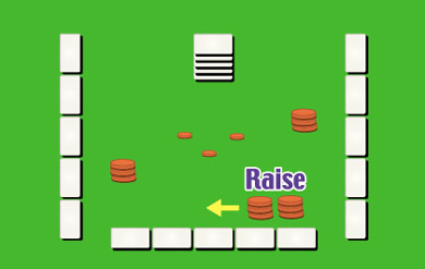 Raise・レイズ 前の順番のプレイヤーよりも高い額を賭けることを、レイズといいます。賭け額が際限なくならないように、1度のレイズで賭けられる上限を決めておきましょう。 |
