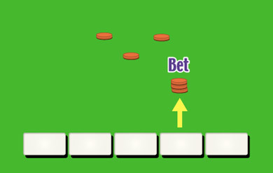 Bet・ベット Bet・ベット(賭ける) をする時は、チップを場の真ん中に出します。 この時のBet・ベットの上限・下限は、プレイ前に決めておきましょう。 |