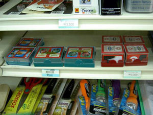 ■韓国国内での花闘■ 韓国国内では、どのコンビニエンスストアにも必ず韓国花札・花闘(ファトウ・Hwatu)が売られております。 値段はだいたい3000W(ウォン)、日本円で約300円ほどです。 |