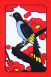 ■ウグイスとカササギ■ 日本の花札では、二月の梅のタネ札に春の鳥であるウグイスが描かれていますが、韓国花札・ファトゥには、カササギが札に描かれている場合があります。 カササギは韓国の国鳥ともいうべき存在で、幸福をもたらす鳥として韓国の人々に親しまれております。 |