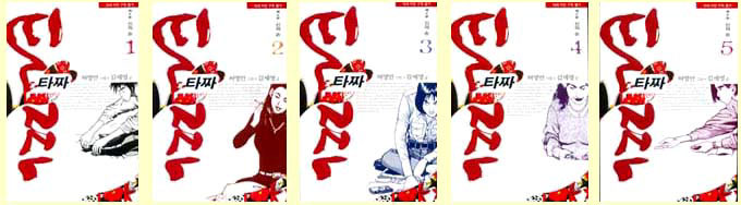 | 韓国には日本の麻雀漫画のように花札漫画が存在し、その中でも大人気なのが、ホ・ヨンマン原作の「タッチャ(全5巻)」です。この「タッチャ」は、チョ・スンウ主演で映画化され、2006年9月末の公開初日には、韓国国内で116万人もの観客を動員する大ヒットとなりました。この漫画の中には「ゴーストップ」を始め、「トリジッコテン」「ソッタ」など韓国花札独自のルールが数多く登場し、花札賭博の勝負が迫力ある描写 で熱く描かれております。また、「ゴーストップ」や「トリジッコテン」のルールの詳細や、イカサマのやり方なども詳しく説明しているので、韓国花札に興味のある方にはオススメの漫画です。 |