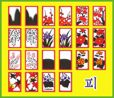 STOP・手順■ 親の後、子も同じように手札から一枚出し、同月の場札に合わせて取り、山札から一枚引き、同月の場札を取っていくという手順を繰り返します。 順番は親から右側に廻っていきます。 |