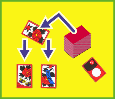 STOP・ナガリ■ 手札をすべて出し、誰も上がれなかった場合は、「ナガリ」といって場が流れます。「ナガリ」の次の場は、勝った時の得点が2倍になります。 |