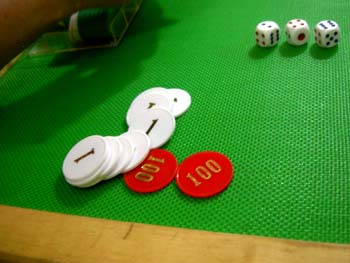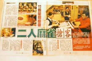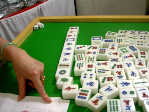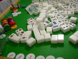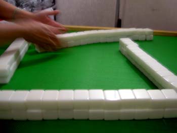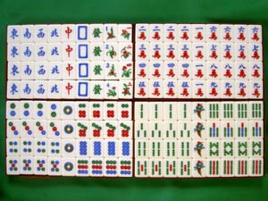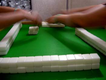 香港2人麻雀 ■ 香港の雀荘では二人麻雀が行われている。このルールはかつてシンガポールやマレーシアで盛んに興じられ、香港では1960〜70年頃に大流行して浸透した。 二人で行うのでイカサマする機会が少ないことと、萬子と翻子(字牌)の二種牌のみを使用するので、大きな役を作り易く、毎局高レートが期待できる賭けとして、香港では人気がある。 |