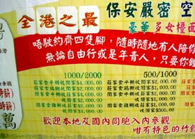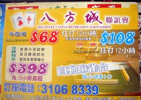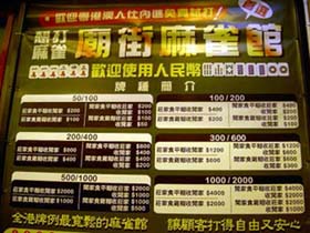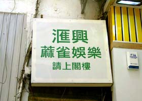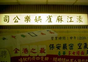 路を歩いていて麻雀屋を目にしないことがないのが香港である。 日本のそれとは違い、店の作りが大掛かりで、派手な電飾看板を擁するものが多く、この光景は、日本のどの街にも必ずあるパチンコ屋とよく似ている。 |